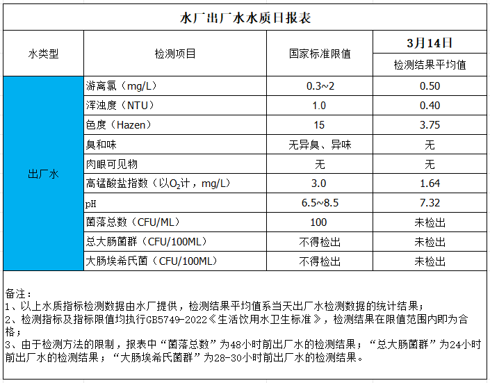 水廠出廠水水質(zhì)日報表(2025-3-14)