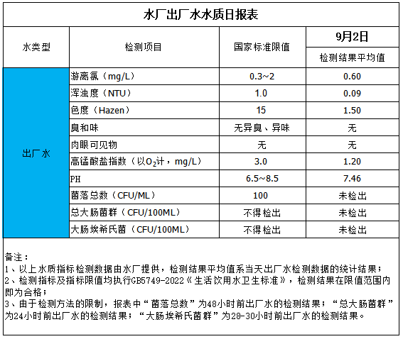水廠出廠水水質(zhì)日?qǐng)?bào)表(2025-9-2)