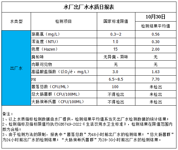 水廠出廠水水質(zhì)日報表(2025-10-30)