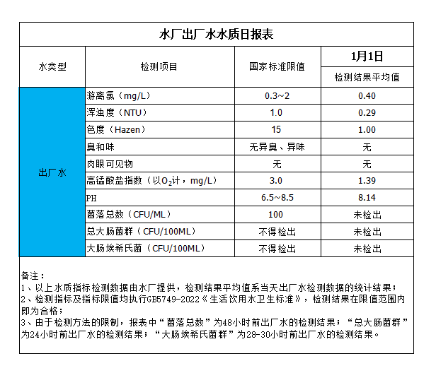 水廠出廠水水質(zhì)日?qǐng)?bào)表(2025-1-1)