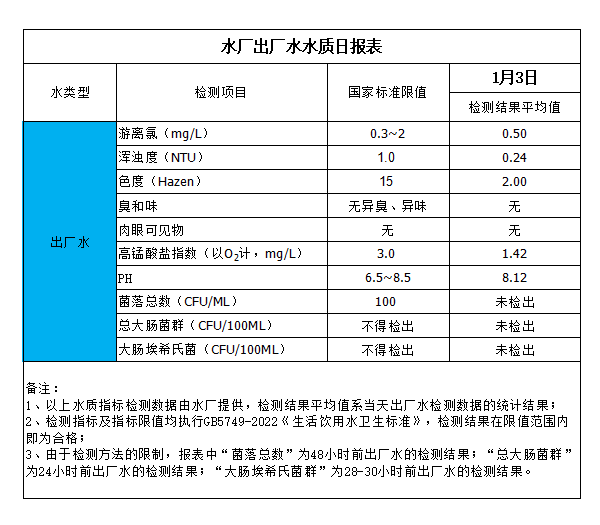 水廠出廠水水質(zhì)日報表(2025-1-3)