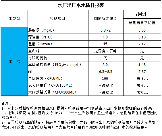 水廠出廠水水質(zhì)日?qǐng)?bào)表(2025-7-8)