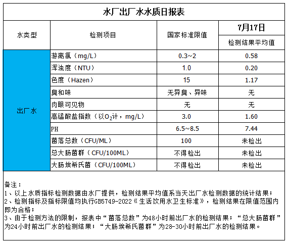 水廠出廠水水質(zhì)日報表(2025-7-17)