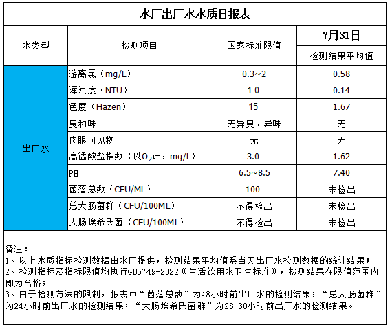 水廠出廠水水質(zhì)日報(bào)表(2025-7-31)