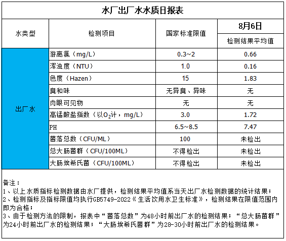 水廠出廠水水質(zhì)日報表(2025-8-6)