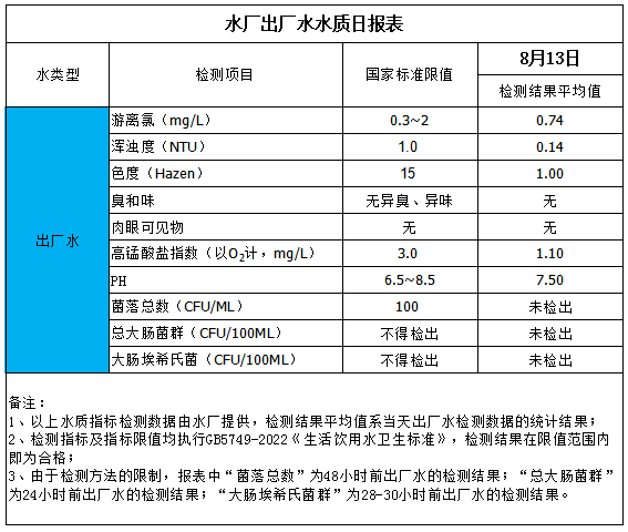 水廠出廠水水質(zhì)日報表(2025-8-13)