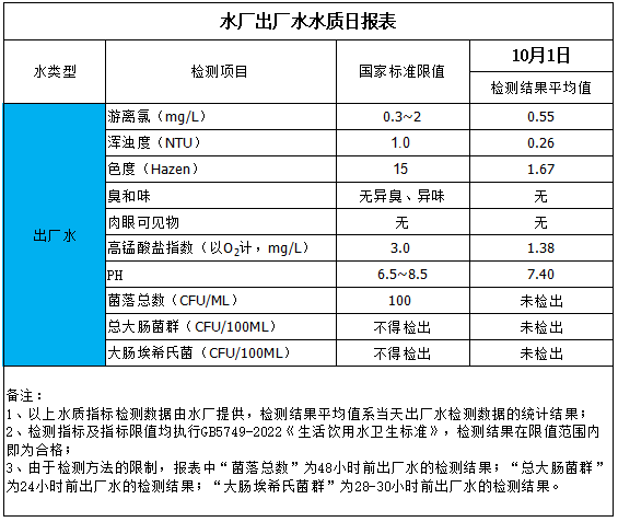 水廠出廠水水質(zhì)日報(bào)表(2025-10-1)